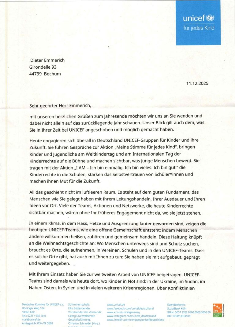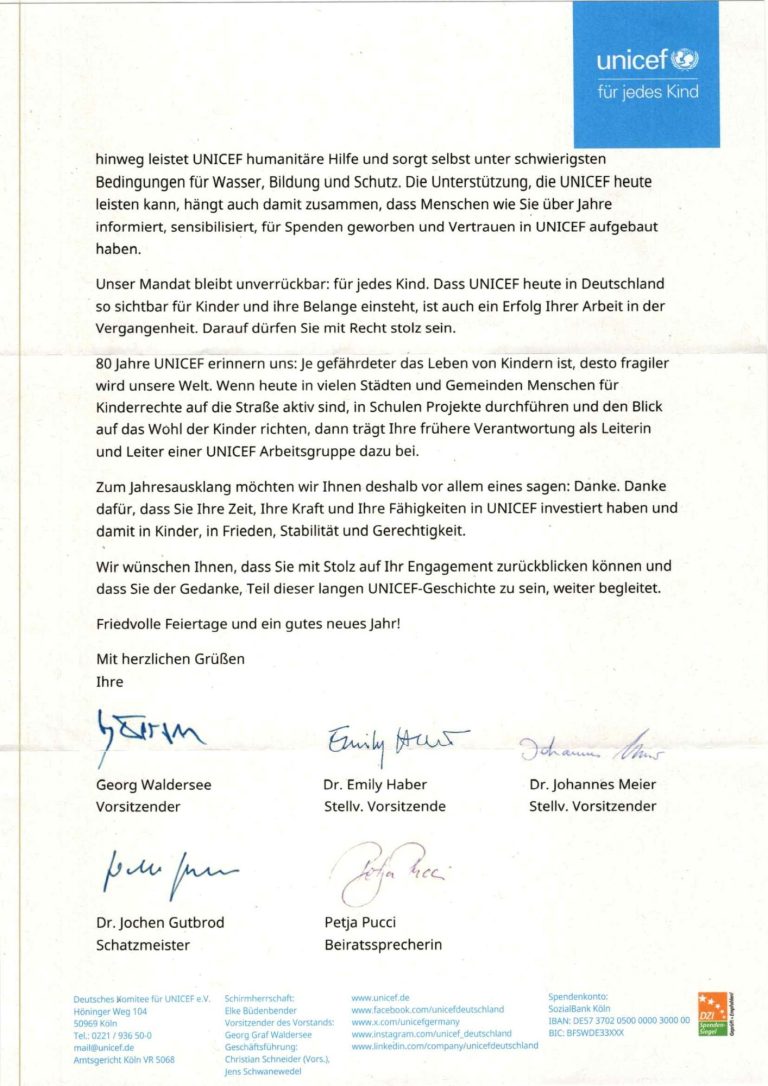 Scheiben vom UNICEF Vorstand in 2025 - Seite 1